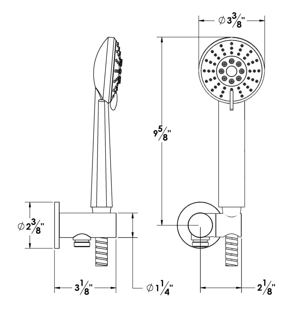 Multifunction Cylindrical Showerhead with Arm and Flange