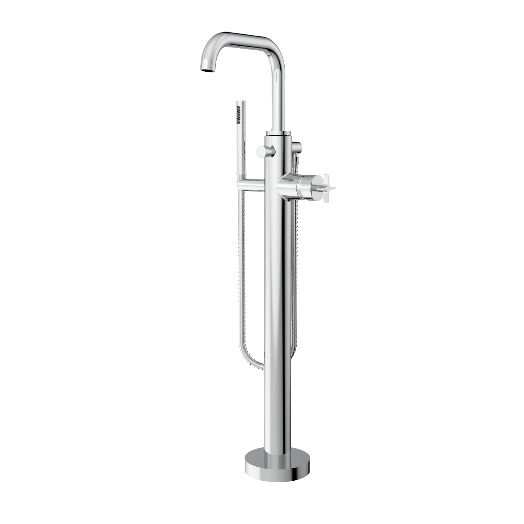 TRIM – Floor Mount Tub Filler with Hand Shower – Cross Handle