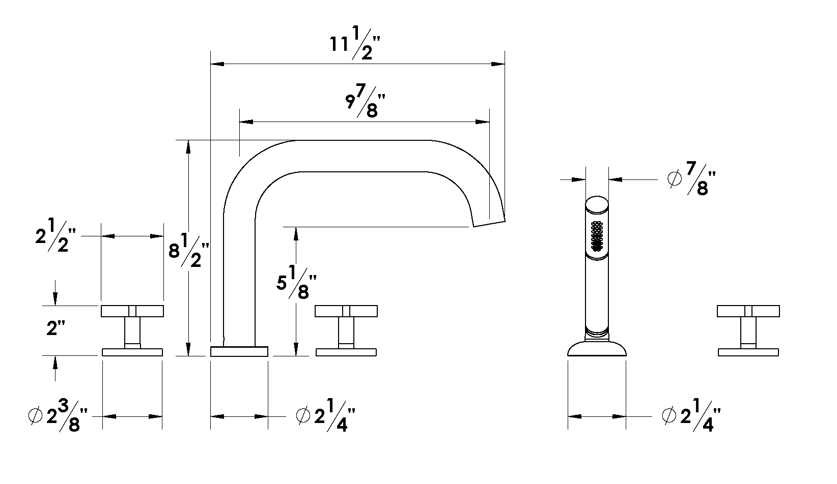 TRIM – Roman Tub Filler with Hand Shower – Cross Handle