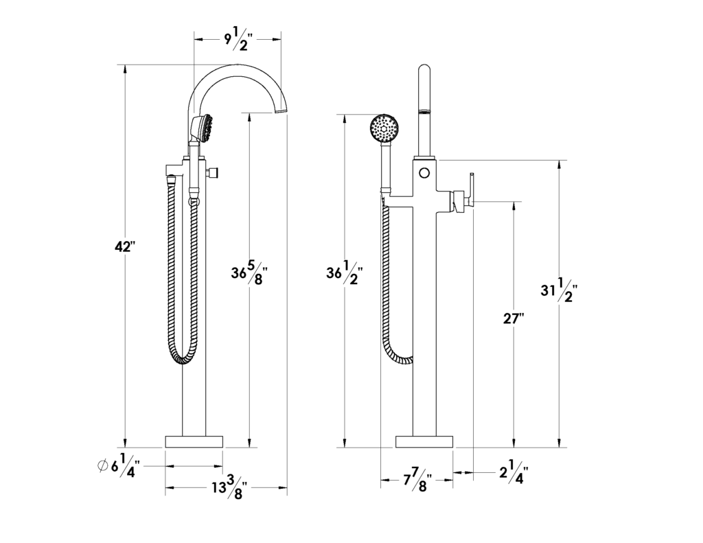 TRIM - Floor Mount Tub Filler with Hand Shower quantity